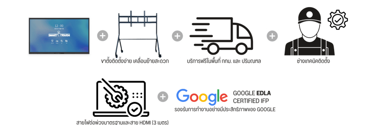 ทีมงานผู้เชี่ยวชาญของเราจะให้บริการติดตั้งและตั้งค่าอุปกรณ์ SMART TOUCH ที่สถานที่ของคุณ เพื่อให้คุณสามารถเริ่มใช้งานได้ทันทีอย่างไม่มีปัญหา
